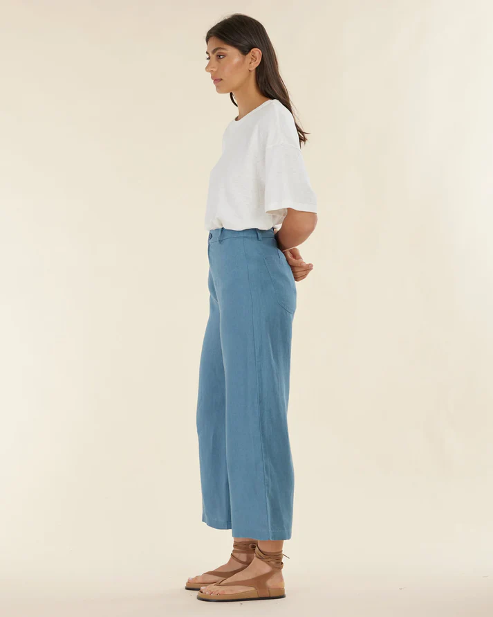 Designed with versatility in mind, the Barossa Linen Pant features a relaxed fit and wide-leg silhouette, ensuring all-day comfort while maintaining a chic appearance. Pair it with a simple tee for a casual daytime look or dress it up with a blouse for a more polished ensemble.