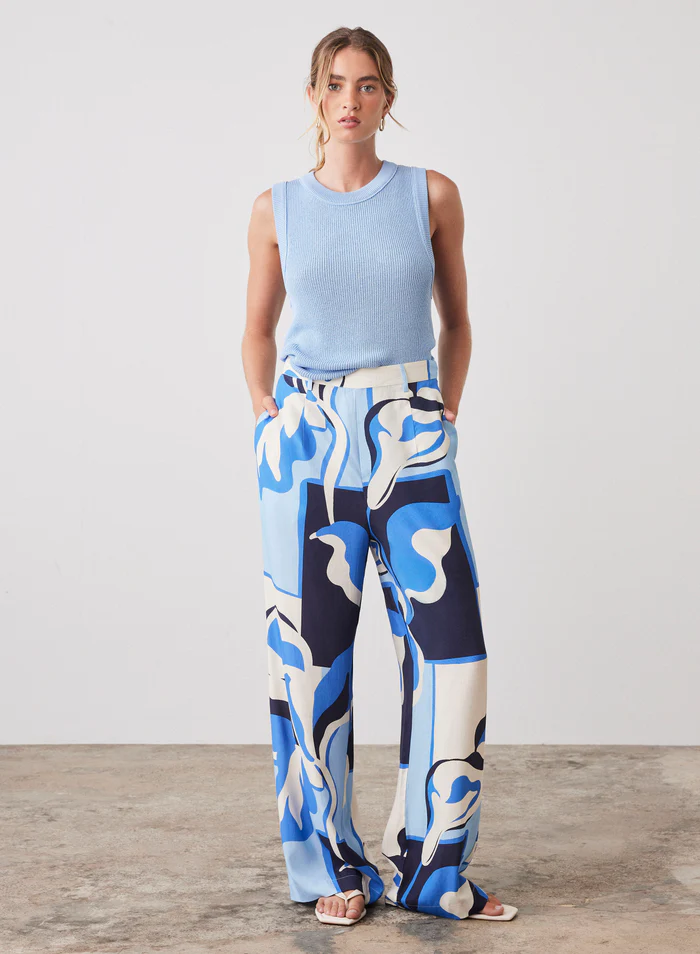 Style it with a simple tank and slides for daytime, or add a blouse and sandals for dinner plans. Shop the Esmaee Daybreak Pant now and bring an easy statement print into your rotation.