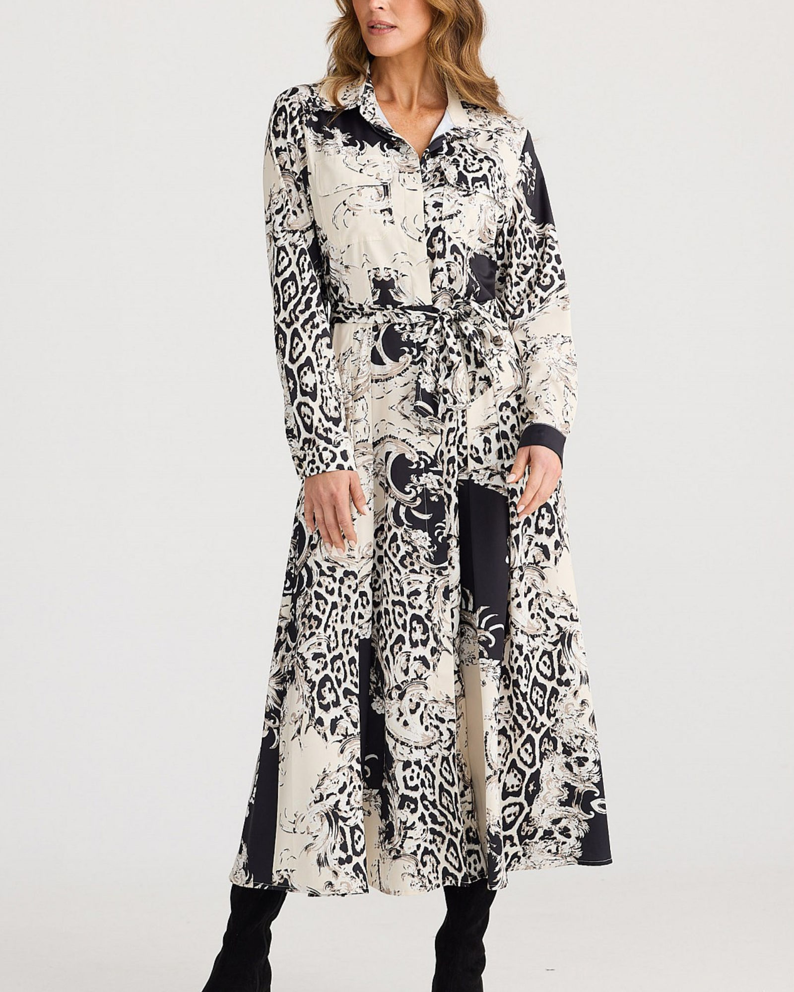 Looking for a mid-season shirt dress that feels polished and easy to wear? The Rossellini Long Sleeve Dress combines a clean silhouette with practical detailing, making it a versatile option for workdays, dinners, and everything in between. Crafted in printed satin, it delivers a smooth, refined finish that instantly lifts your look.