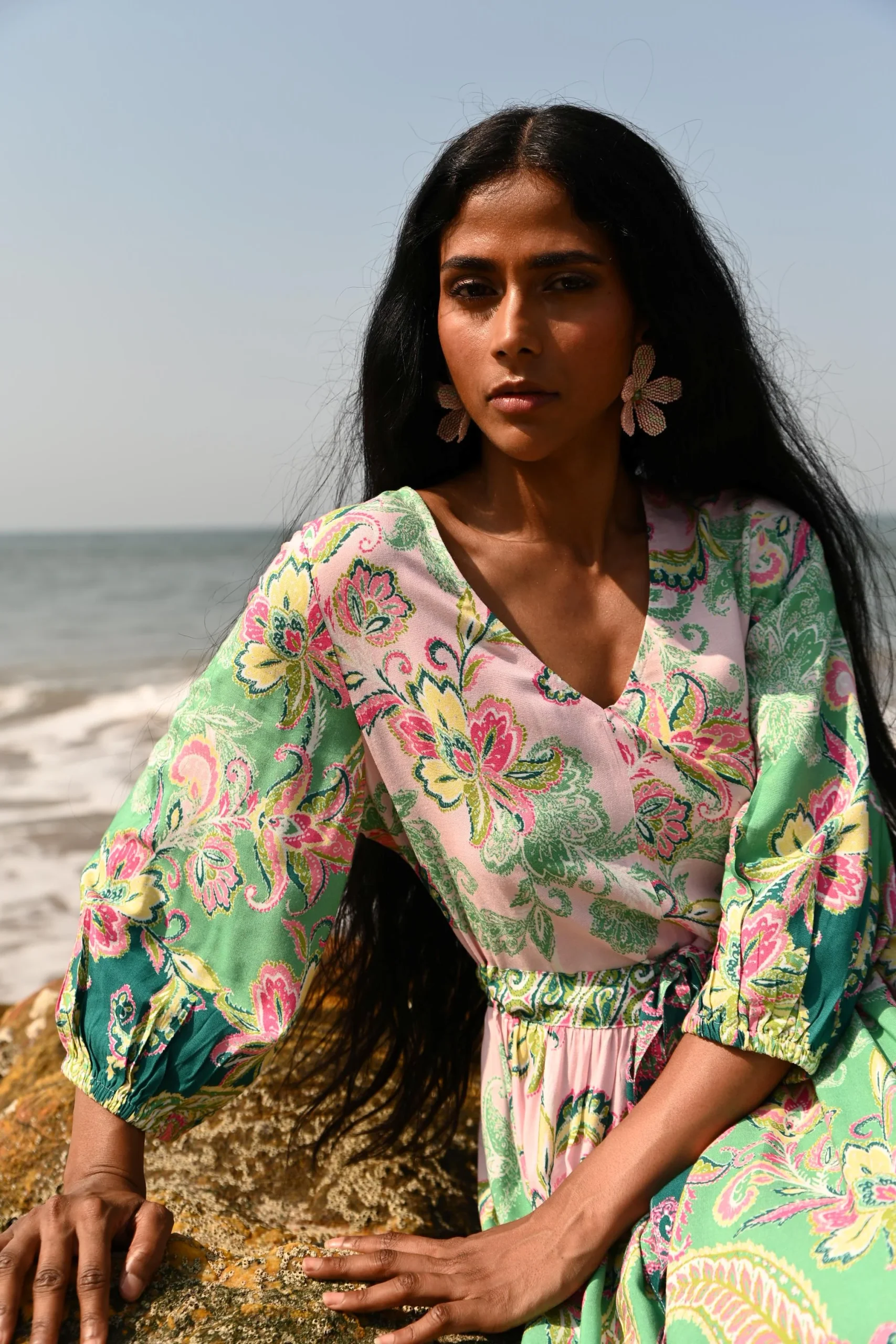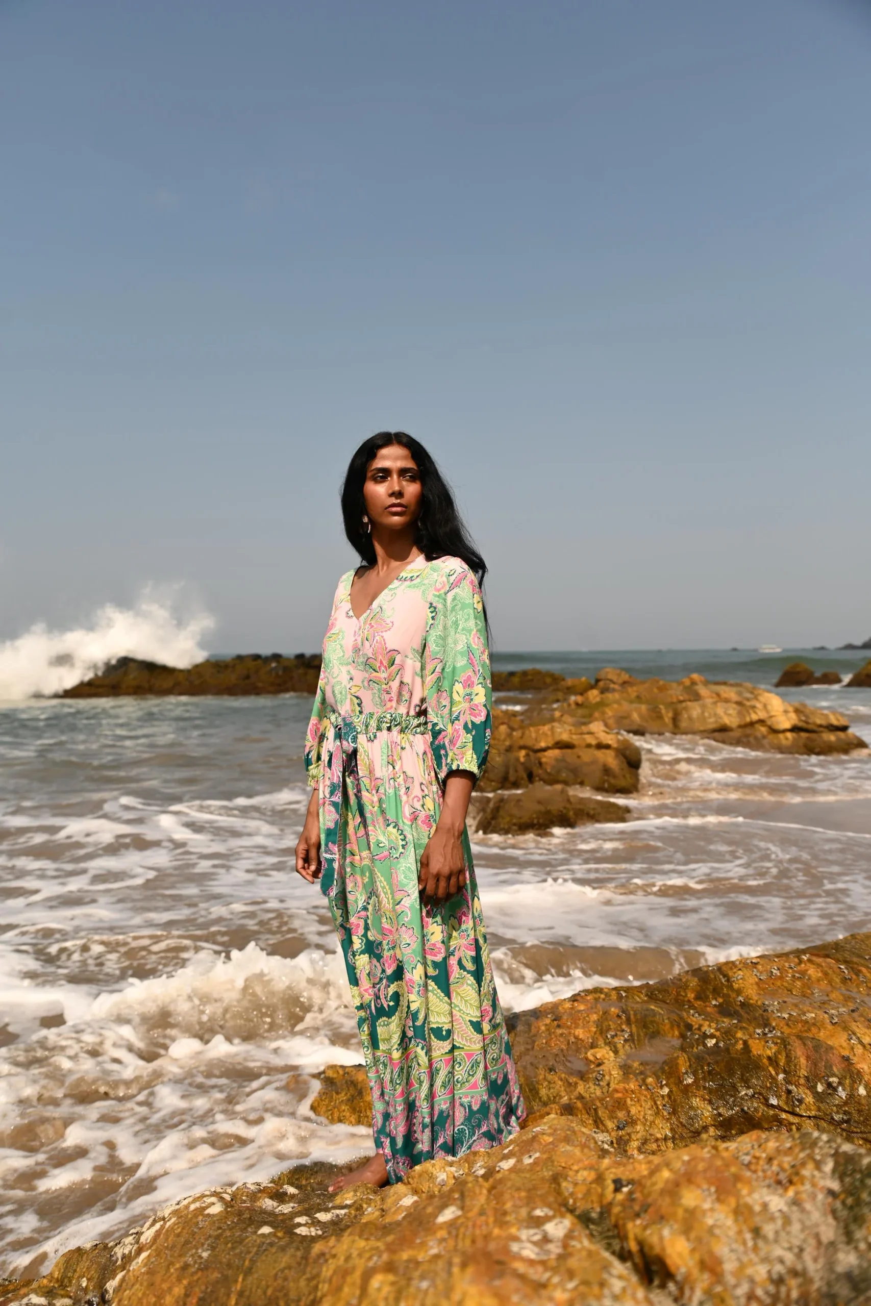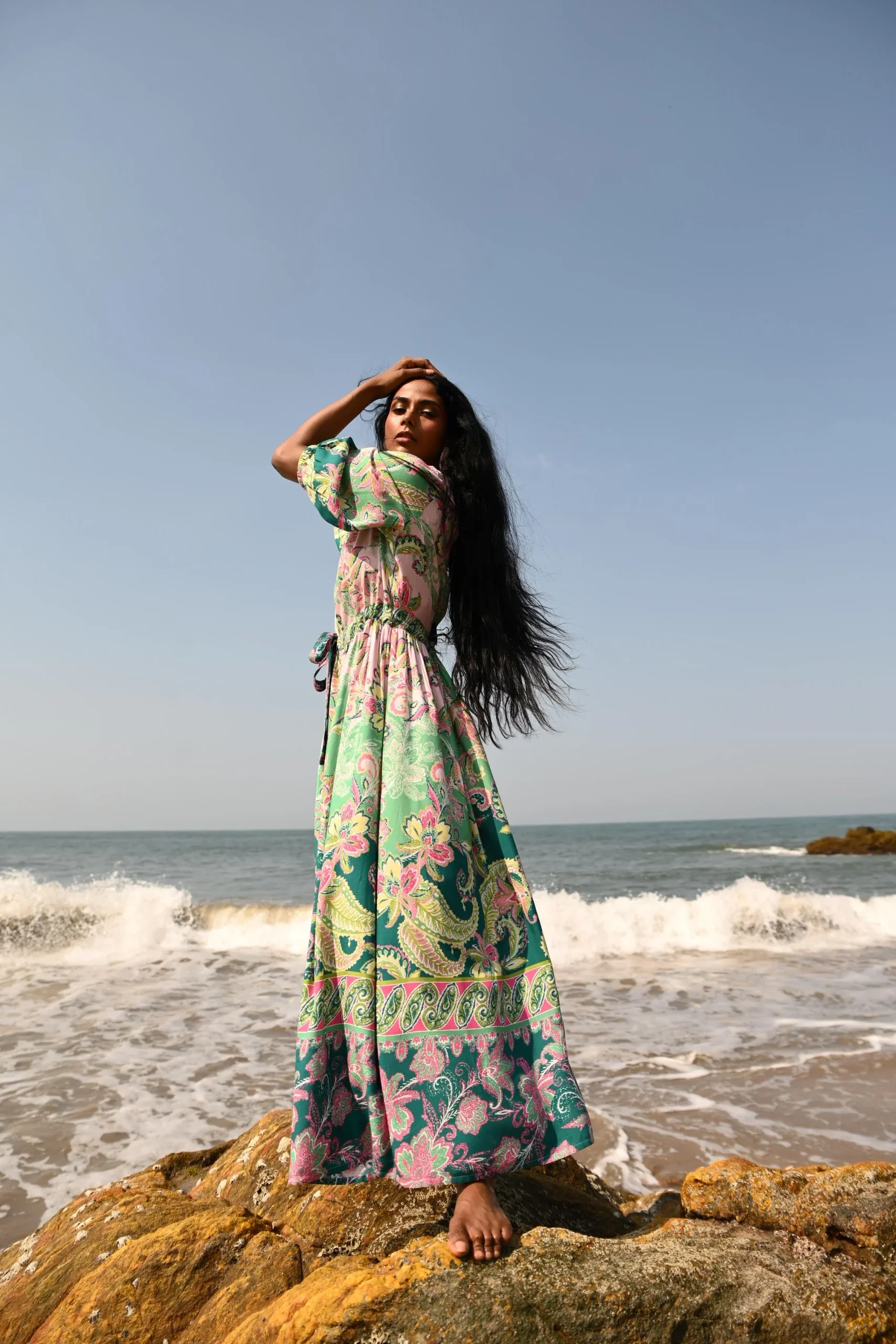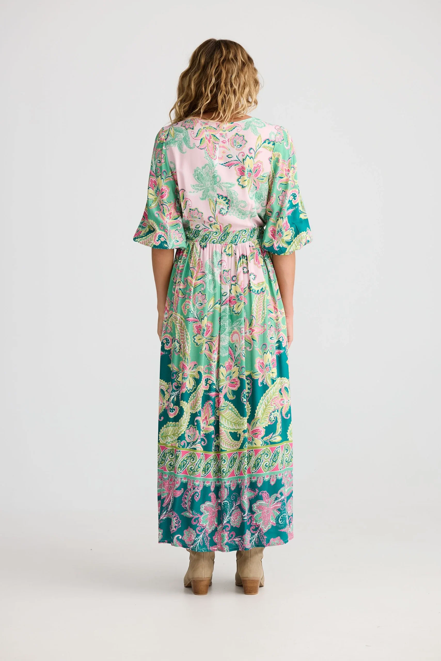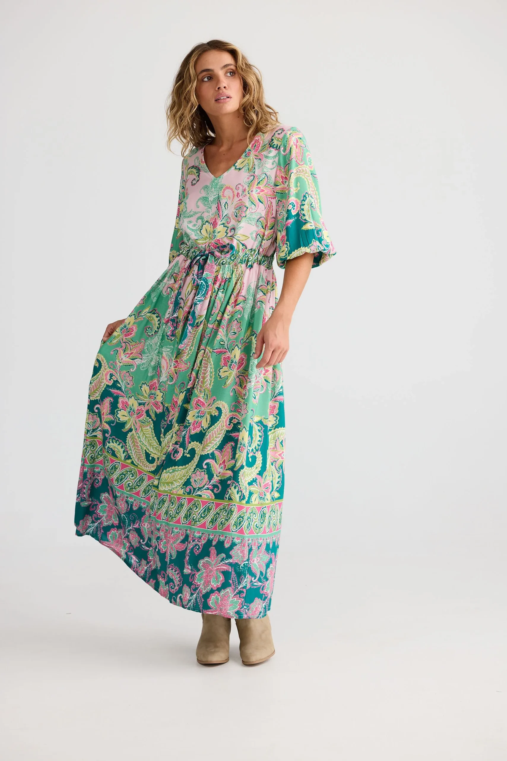 Looking for a maxi dress that feels feminine, comfortable, and easy to wear? The Talisman Isabella Maxi Dress in Paisley Dream is designed with a flattering V-neckline and mid-length peasant sleeves finished with elasticised cuffs for a soft, wearable shape.