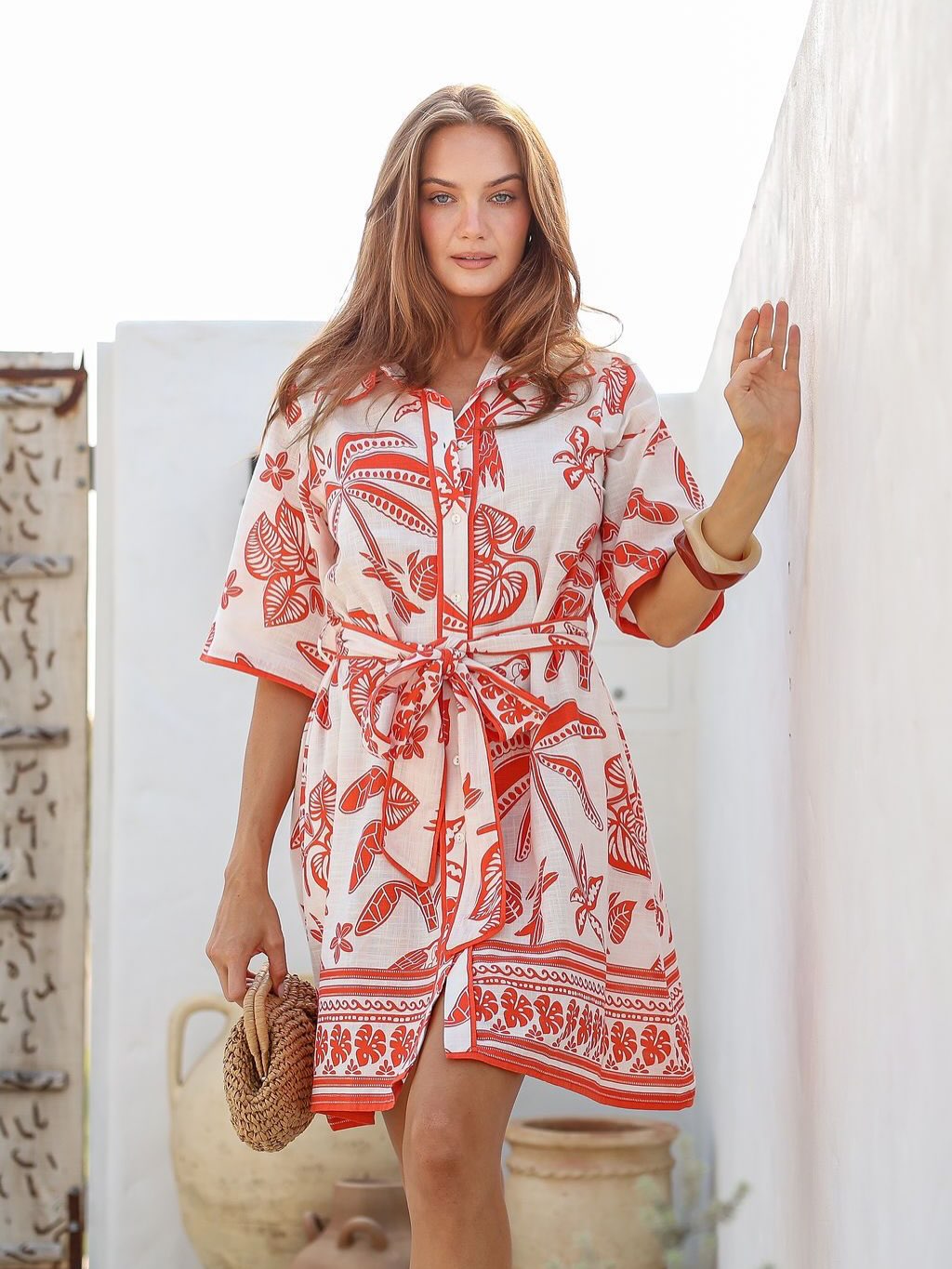Bring an easy, resort-ready feel to your everyday wardrobe with the Joop & Gypsy Print Dress. In the featured image, the dress stands out with a fresh green botanical print on a light base, finished with a classic collar and a button-through front that keeps the look crisp and effortless.