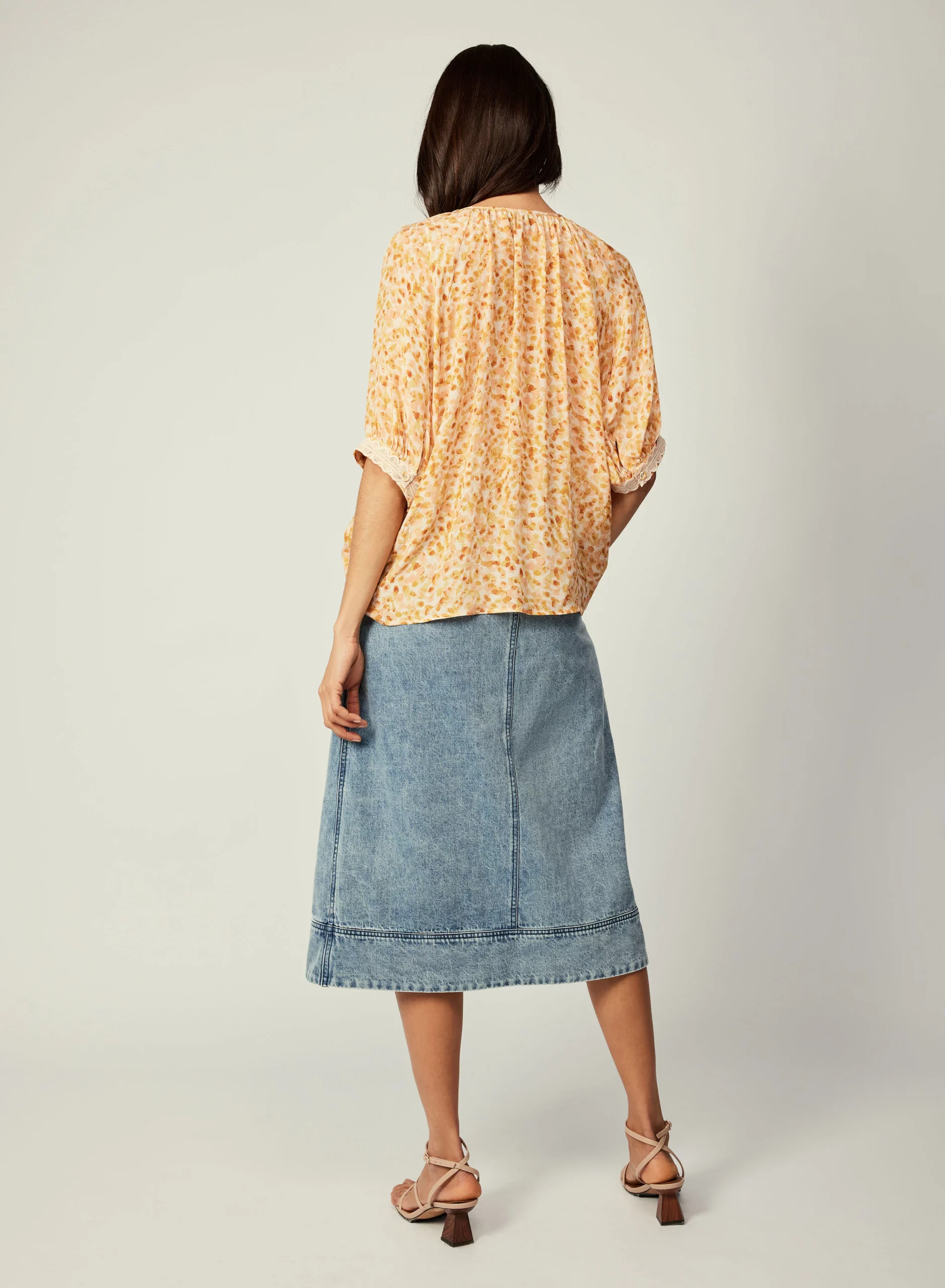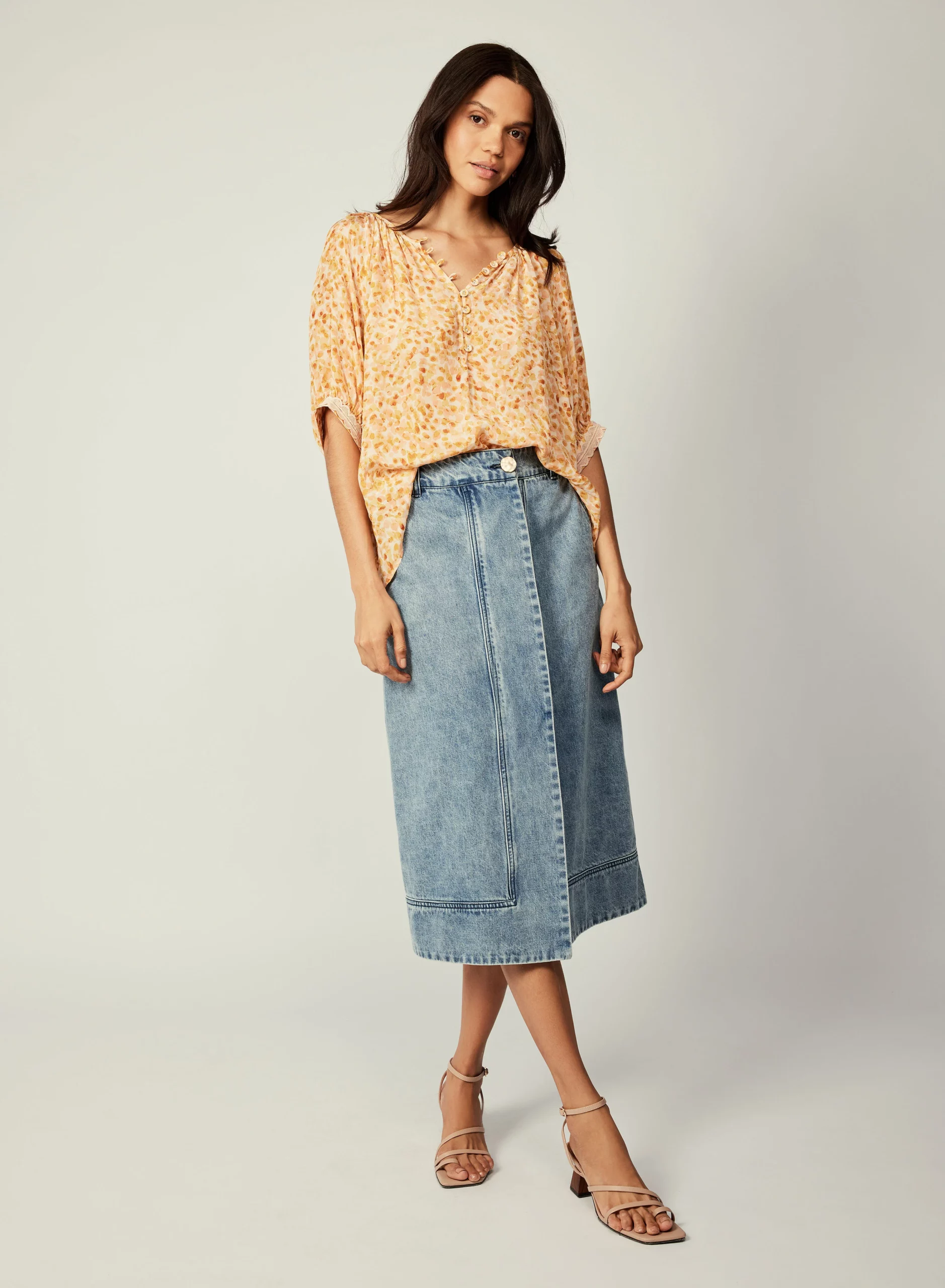 With its round neckline, functional button opening, and button cuffs on short sleeves, this blouse offers both style and comfort. The cotton trim detail adds an extra element of refinement, making it a versatile piece for any occasion.