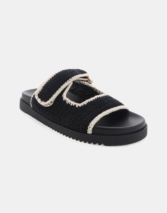 Looking for an easy slide that still feels styled? The Billini Abbot in Black-White is a statement everyday sandal with a chunky sole and textured upper that adds instant interest to simple outfits. The bold black finish is balanced with contrasting white trim for a clean, modern look.