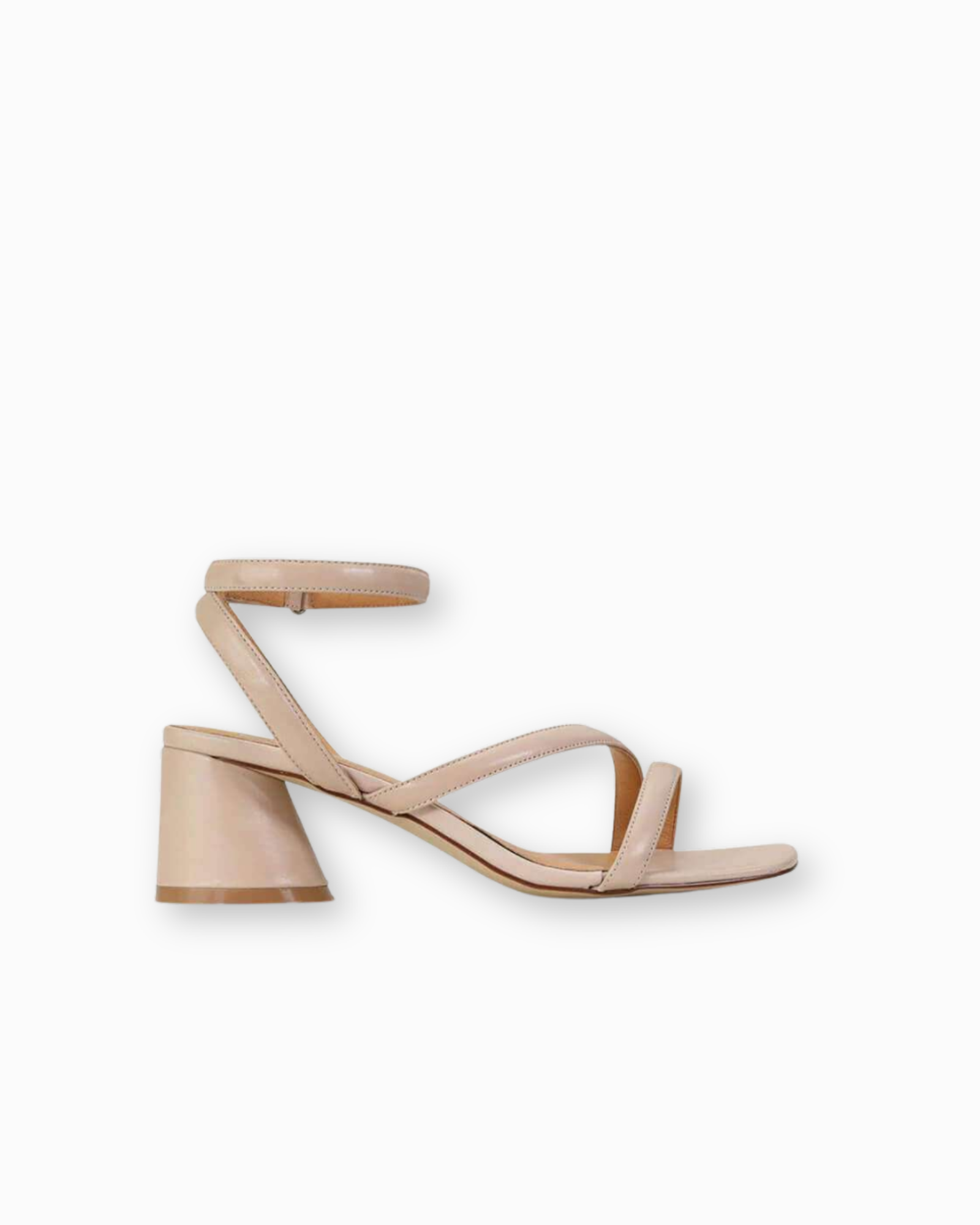 Set on a round angled heel, Petricia adds a contemporary edge while staying wearable. Three fine straps wrap elegantly across the foot and around the ankle, secured at the side with a sleek slide-through fastening for a streamlined finish. The nude tone makes it easy to pair with everything from tailored sets to dresses, keeping the look light and elevated.