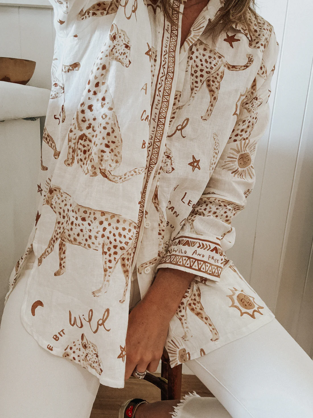 Looking for the perfect blend of effortless style and standout design? Introducing the Billie Shirt by LJC Designs – an oversized button-up masterpiece that combines comfort with flair. Featuring a raglan-style sleeve, a rounded hem, and split sides, this shirt is designed to give you an airy, relaxed fit without sacrificing sophistication. But what truly sets it apart is the exclusive Leopard Print, brought to life with Cass Deller’s hand-painted watercolor elements, ensuring a unique and artful touch to your wardrobe.