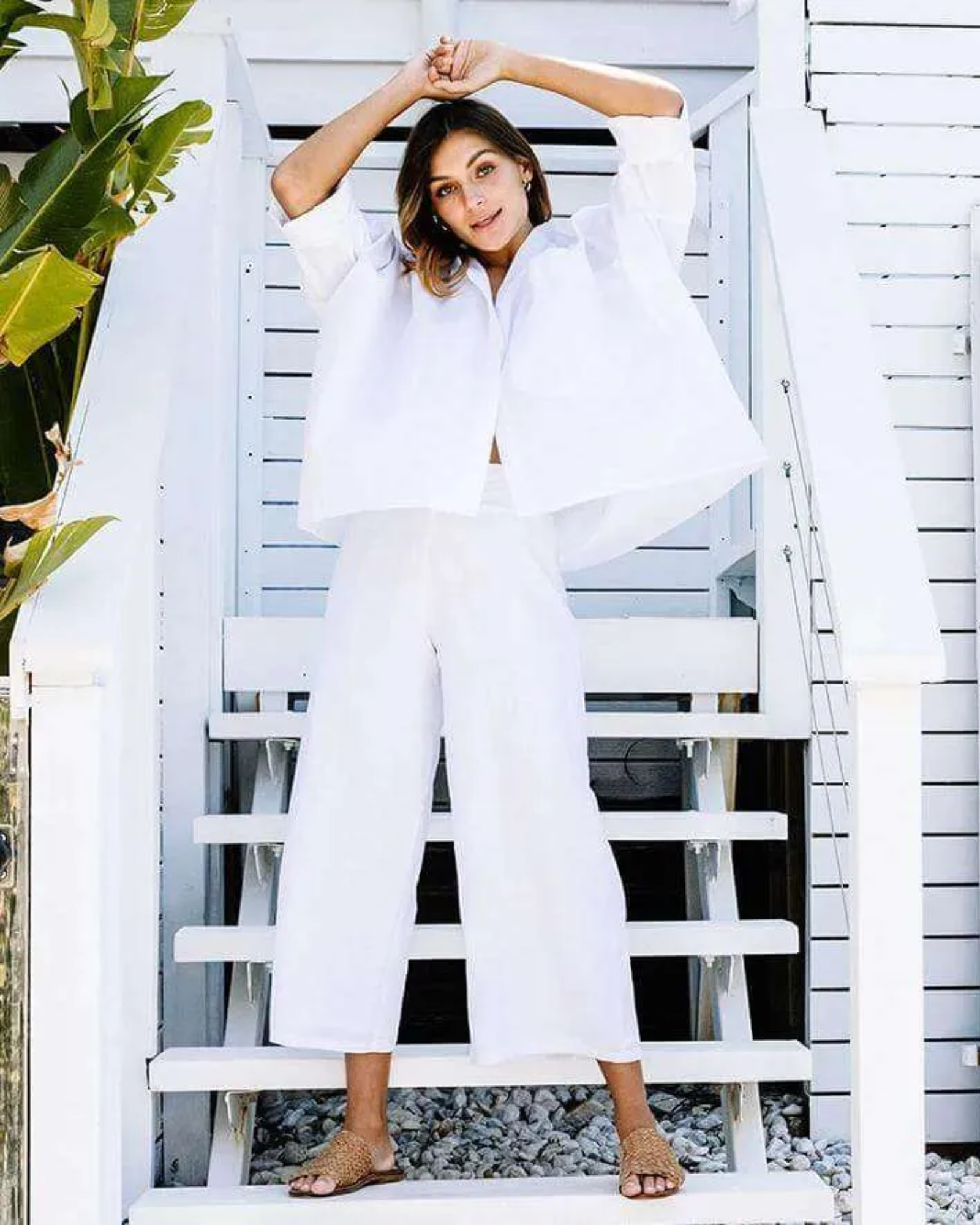 Effortlessly chic and designed for modern versatility, the LJC Designs Soho Pants bring a refined yet relaxed silhouette to your wardrobe. Featuring a tailored waist with an invisible side zip, these wide-leg pants offer a sleek, flattering fit. The 3/4 length cut makes them perfect for styling across seasons, whether dressed up or down.