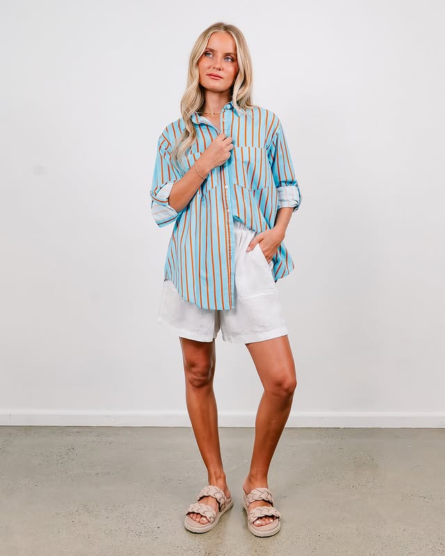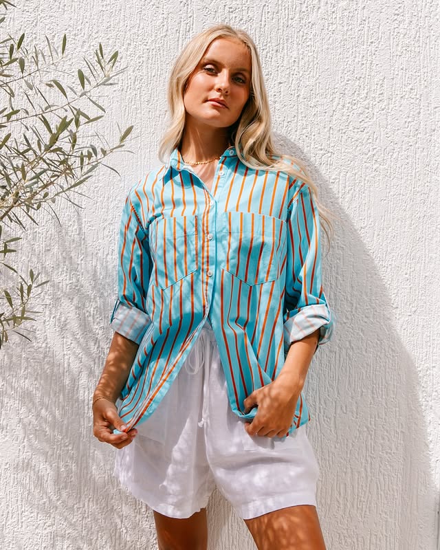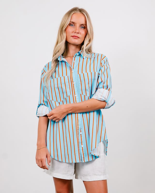 SOUL SPARROW STRIPE SHIRT (L) BLUE / ORANGE