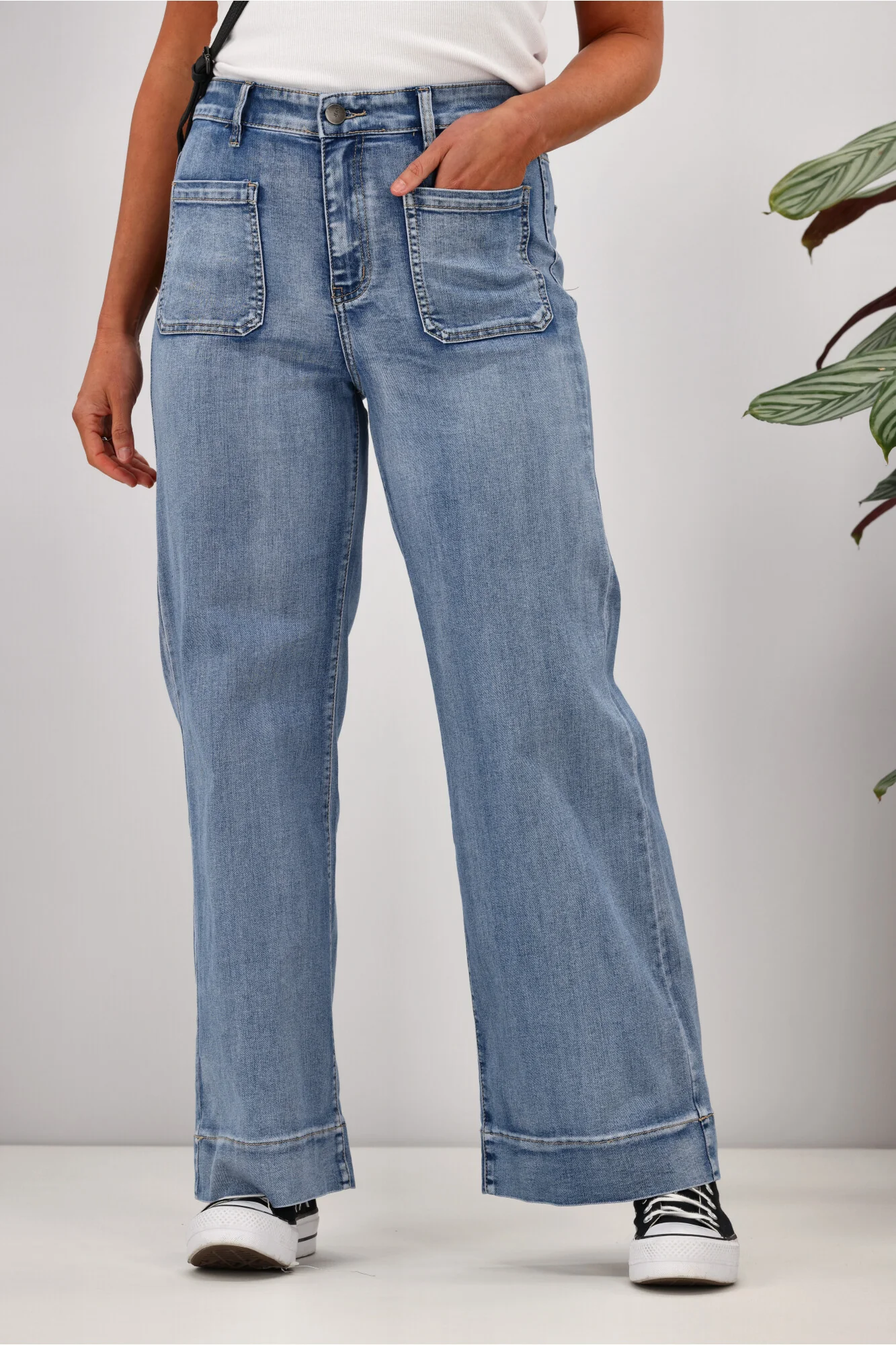 WAKEE JEANS PATCH POCKET BLUE WASH